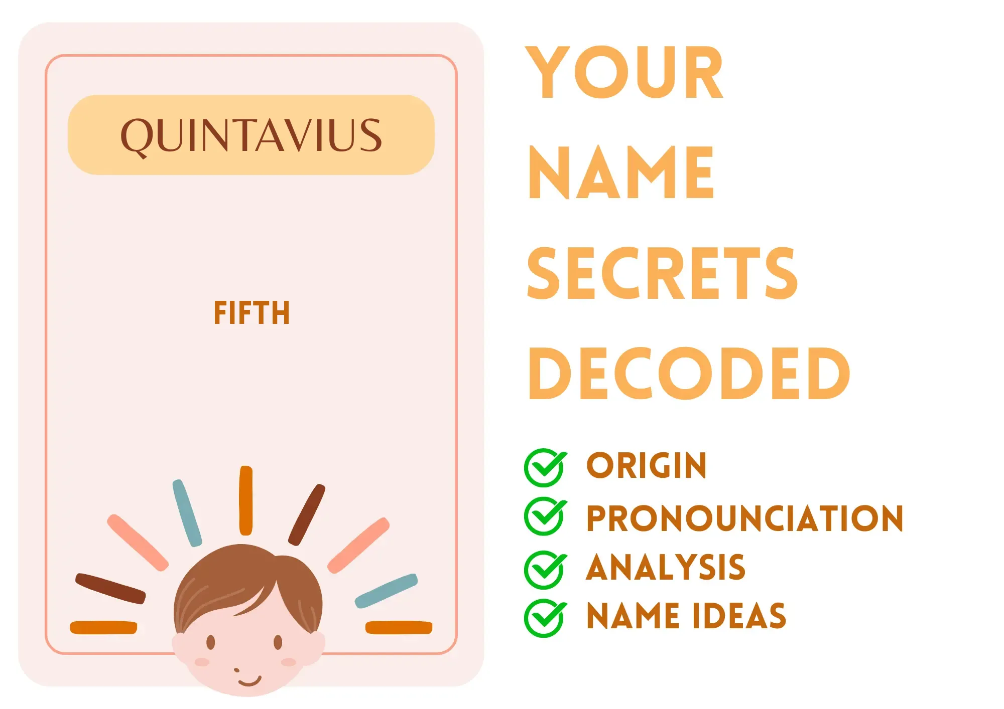 Quintavius translates to "fifth"—think of it as being part of an elite club with its own special perks. Being the “fifth” can symbolize balance and strength in changing circumstances. Unlike the chaos of being first (which comes with pressure), you glide gracefully through life. You may find yourself as a mediator between friends or a harmony-seeker in group projects. Imagine being the peacekeeper in a bickering team, bringing everyone back together and rounding them out like the final piece to a jigsaw puzzle. Your role may not always be spotlighted, but trust that you hold everything together!