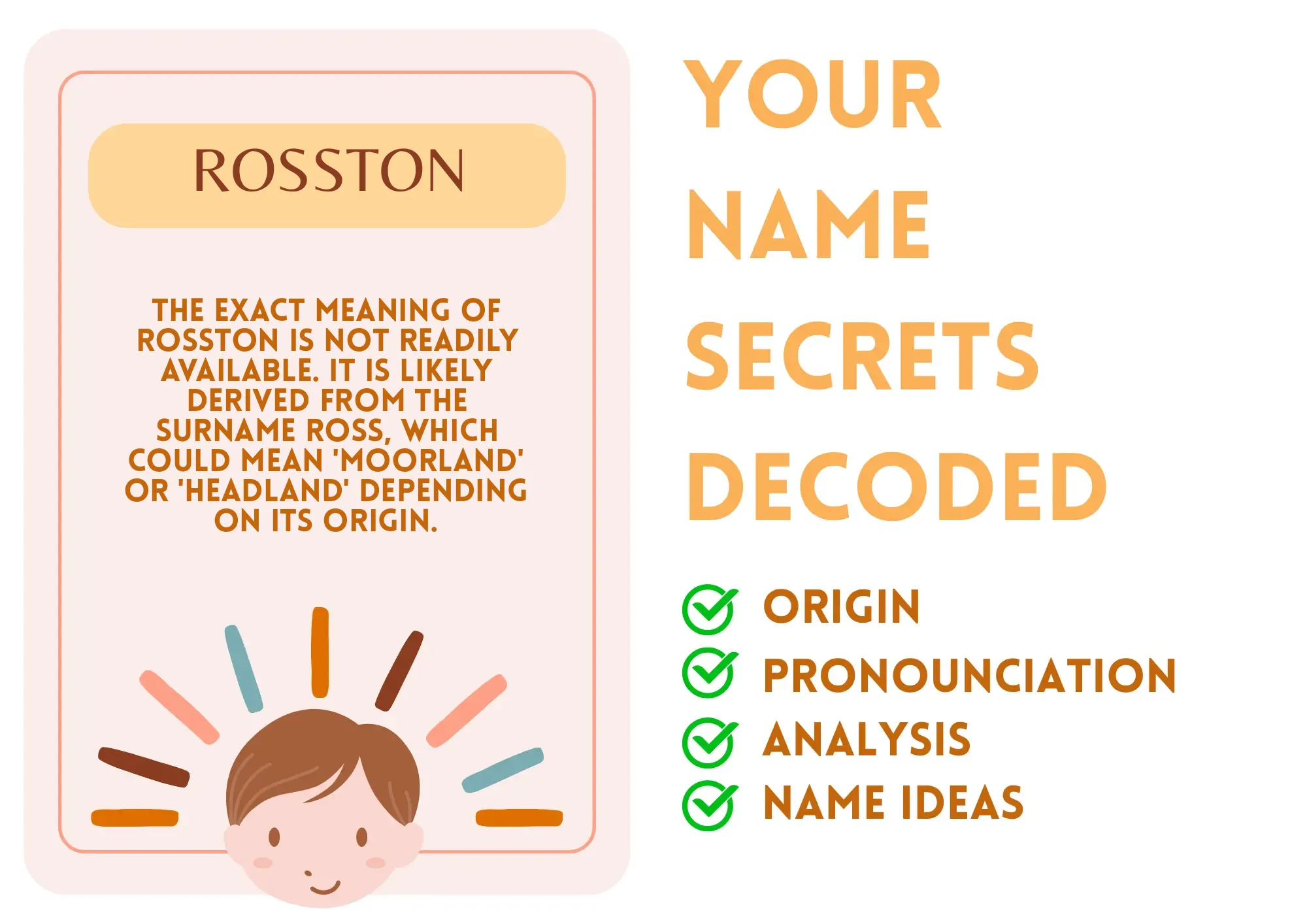 Imagine a name that stands out in a crowded room, like a bright lighthouse guiding ships home. That’s Rosston for you! This modern name has a powerful ring to it, almost like a superhero emerging to save the day. Its uniqueness makes it memorable, and while it might not be a household name, it definitely carries a sense of strength and stability. Think of Rosston as the verses of a cool song that gets stuck in your head in the best way possible—hard to forget and always full of energy!