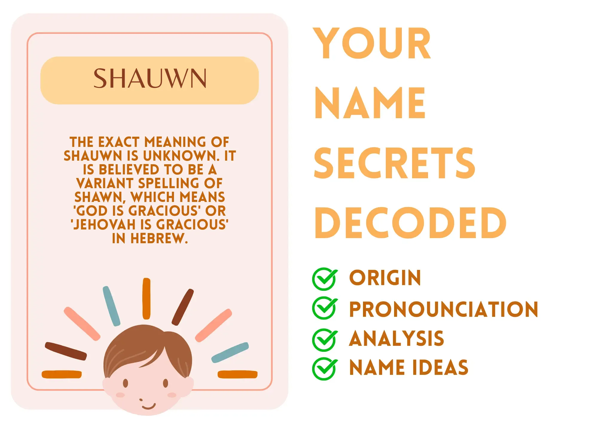 Origin: The origin of Shauwn is uncertain. It is believed to be a variant spelling of Shawn, which has Hebrew origins.