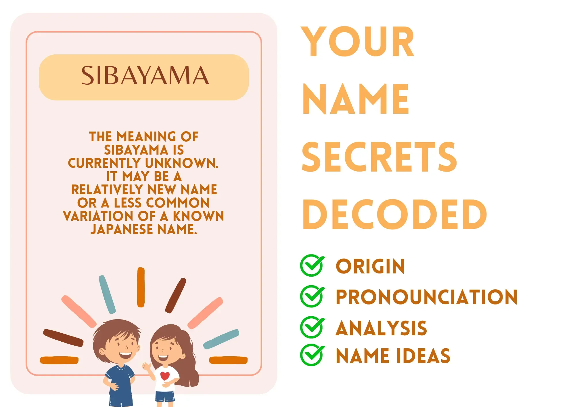 Meaning: The meaning of Sibayama is currently unknown. It may be a relatively new name or a less common variation of a known Japanese name.