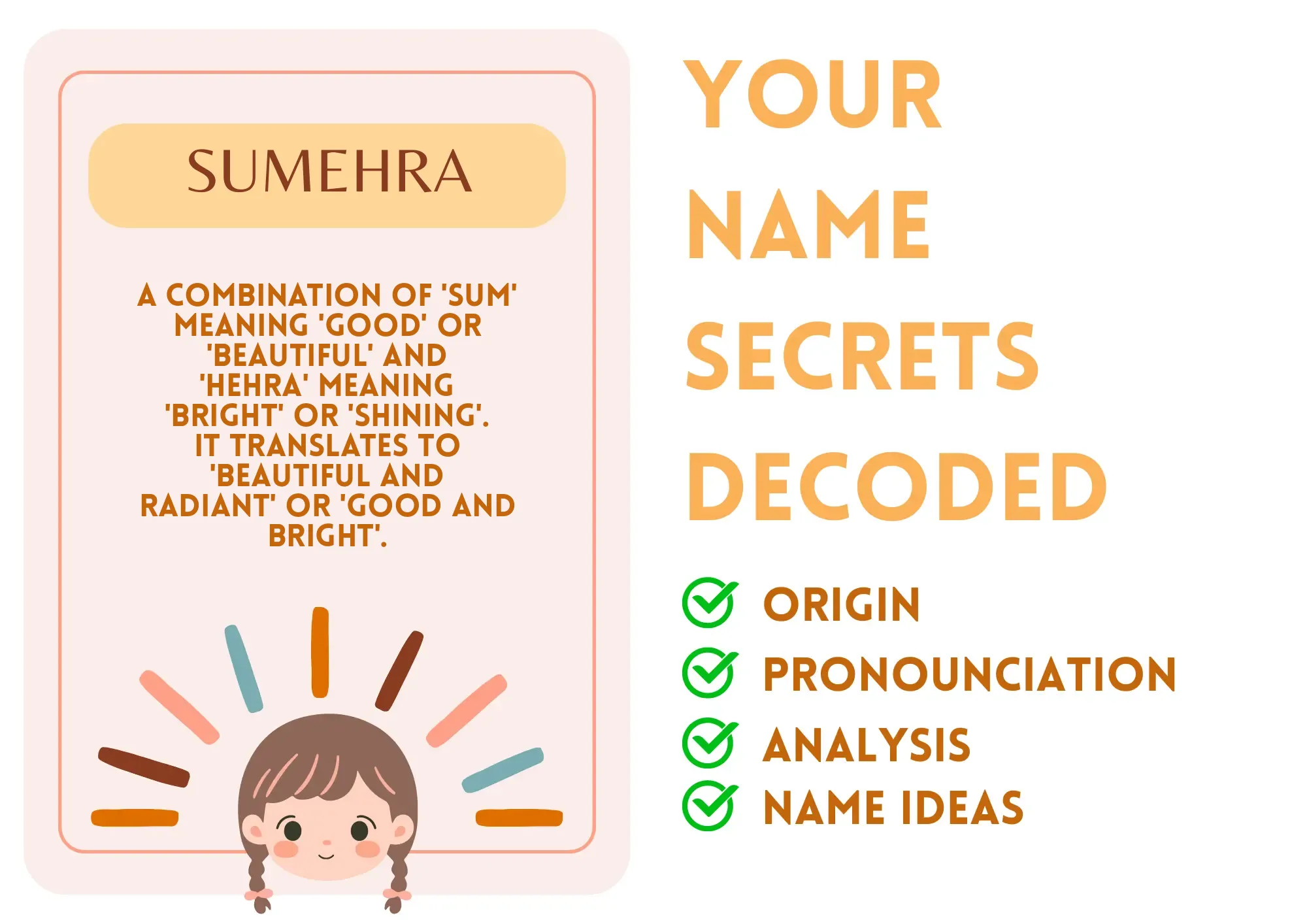 Background: Sumehra is a name often associated with Hindu culture and traditions. It embodies the values of beauty, radiance, and goodness.