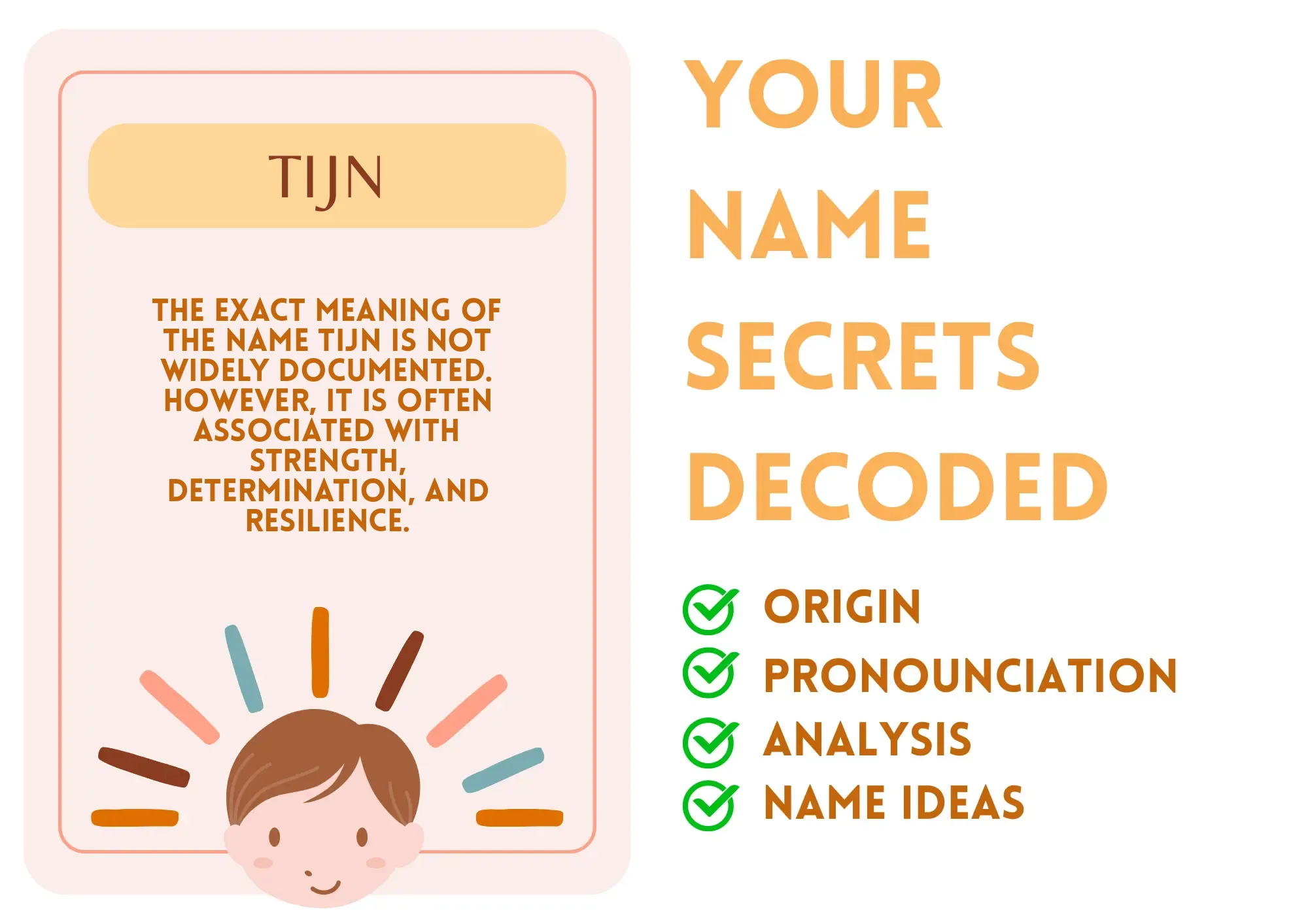 Meaning: The exact meaning of the name Tijn is not widely documented. However, it is often associated with strength, determination, and resilience.