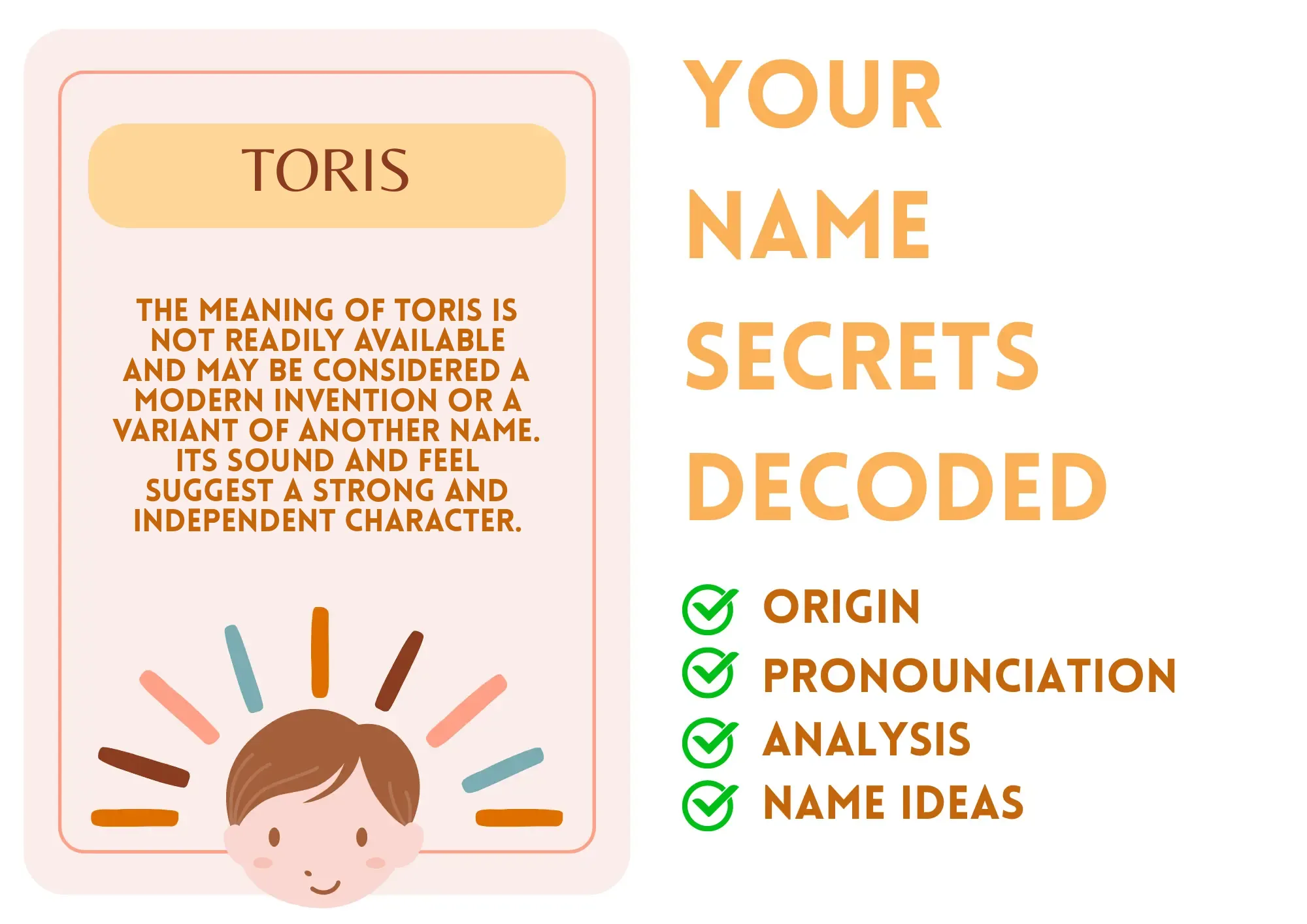 Meaning: The meaning of Toris is not readily available and may be considered a modern invention or a variant of another name. Its sound and feel suggest a strong and independent character.