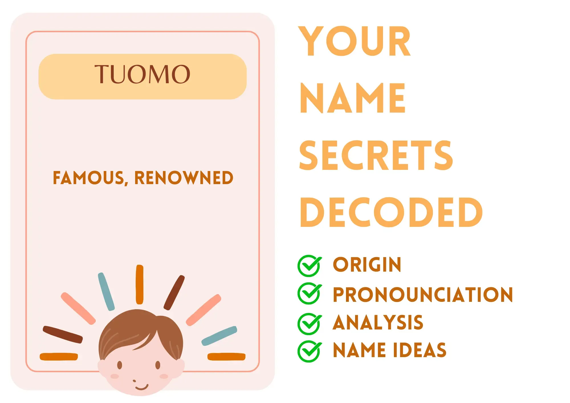 Tuomo is a Finnish name with a strong, traditional feel. It signifies "famous" or "renowned" and has deep roots in Finnish history and culture. Primarily used for boys, Tuomo is a name that evokes a sense of strength, heritage, and enduring legacy.