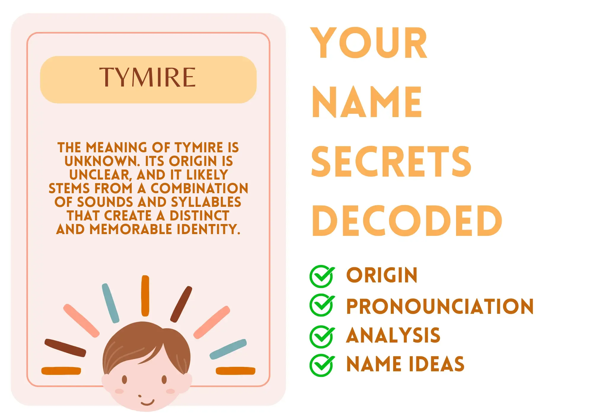 Meaning: The meaning of Tymire is unknown. Its origin is unclear, and it likely stems from a combination of sounds and syllables that create a distinct and memorable identity.
