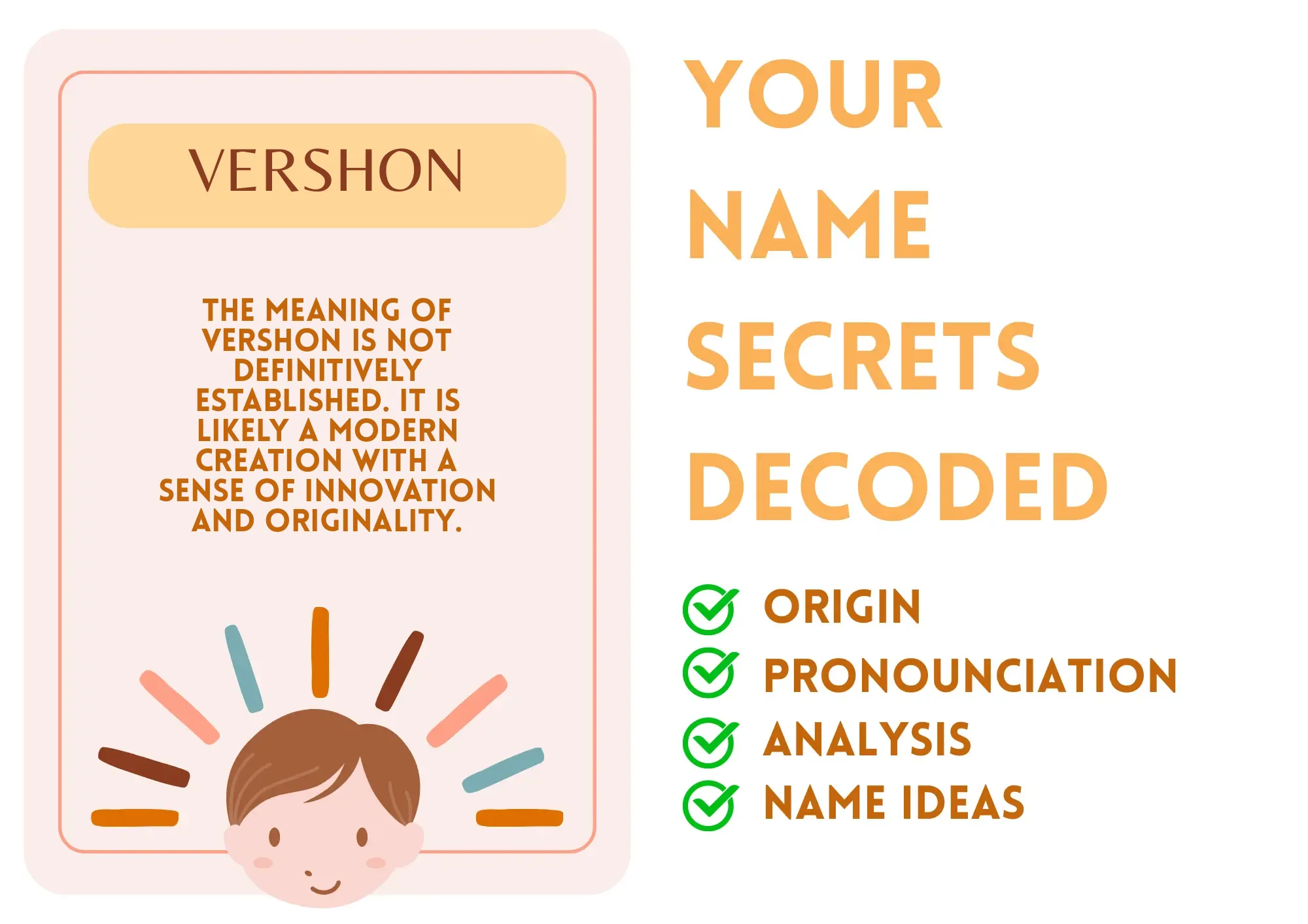 Meaning: The meaning of Vershon is not definitively established. It is likely a modern creation with a sense of innovation and originality.