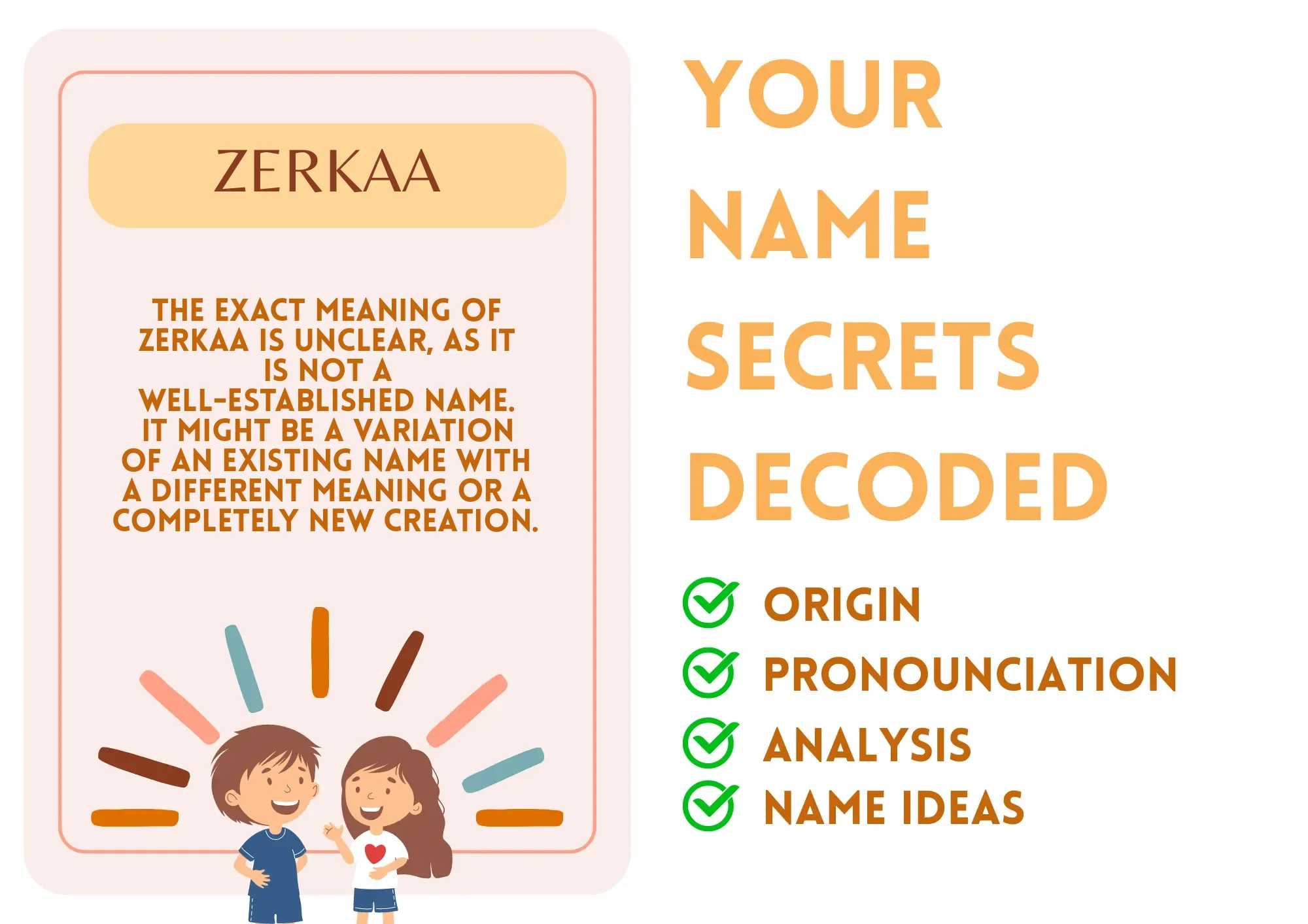 Zerkaa is a relatively new name, so its perception is largely subjective. It is easy to write and pronounce, making it memorable and distinct. The name could be perceived as cool, trendy, and modern, appealing to those seeking a unique and unconventional choice.