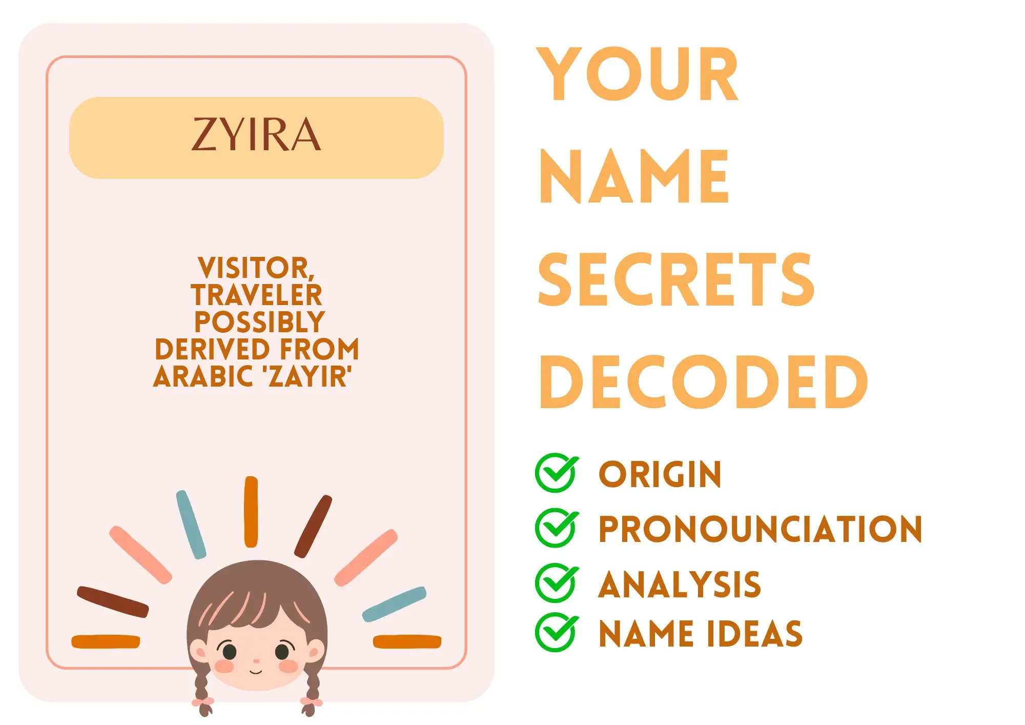 Origin: The origin of Zyira is uncertain, but it is often linked to Arabic origins, potentially derived from the word 'zayir.'