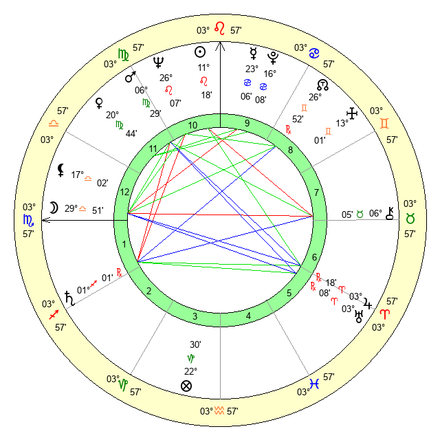 | Neptune | 26 Leo 8 | 1 Aries 55 | 29 Leo 4 |