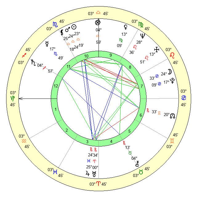 | Mars | 24 Libra 25 | 17 Scorpio 23 | 3 Capricorn 24 |