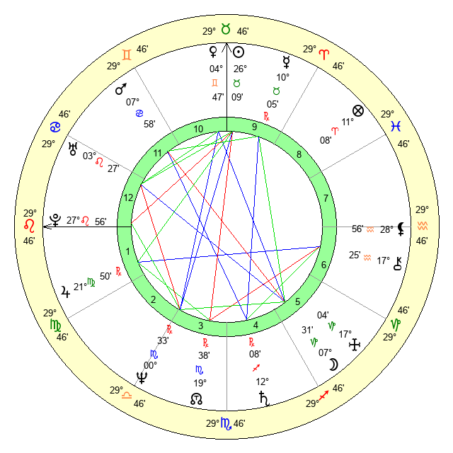 | Pluto | 27 Leo 55 | 3 Aquarius 46 | 29 Leo 10 |