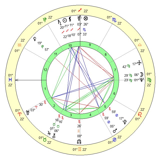 | Neptune | 1 Virgo 24 | 29 Pisces 22 | 29 Leo 29 |