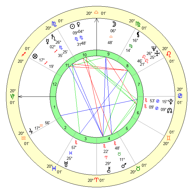 | Sun | 9 Scorpio 31 | 10 Scorpio 31 | 19 Aquarius 58 |