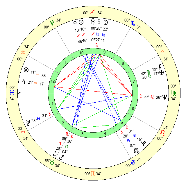 | Moon | 22 Scorpio 13 | 23 Taurus 50 | 17 Cancer 42 |