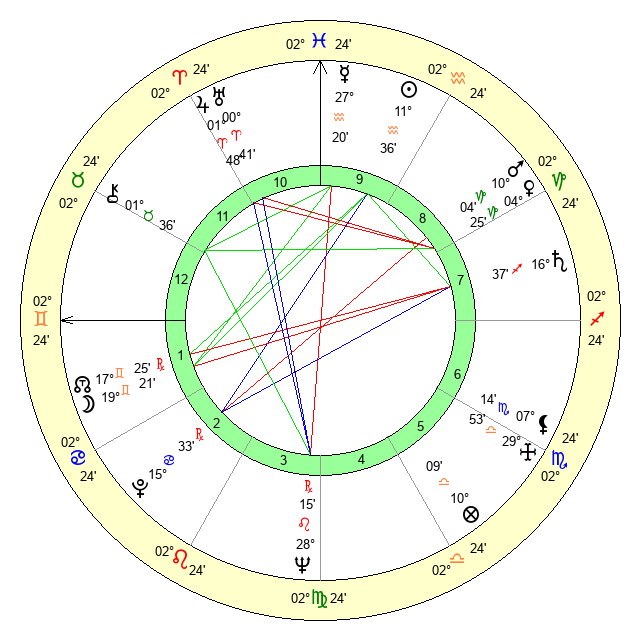 | Jupiter | 1 Aries 46 | 11 Gemini 17 | 24 Aries 9 |