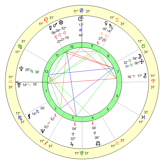 | Sun | 13 Cancer 44 | 13 Cancer 55 | 4 Virgo 30 |