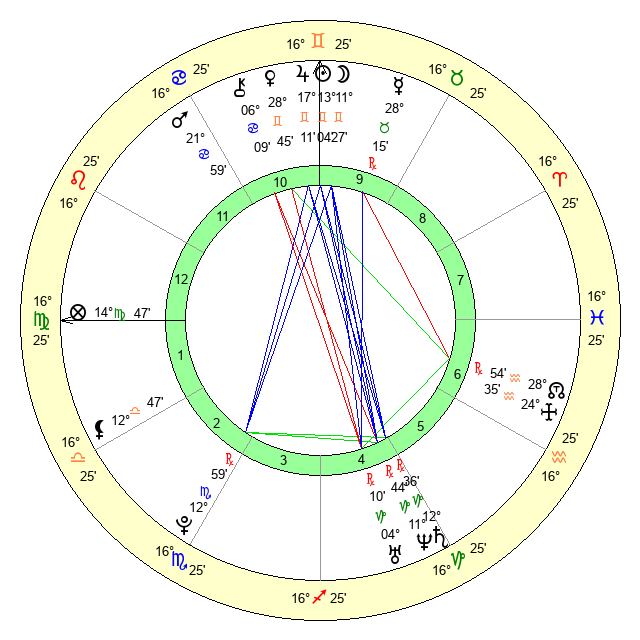 | Moon | 11 Gemini 27 | 19 Virgo 43 | 3 Libra 14 |