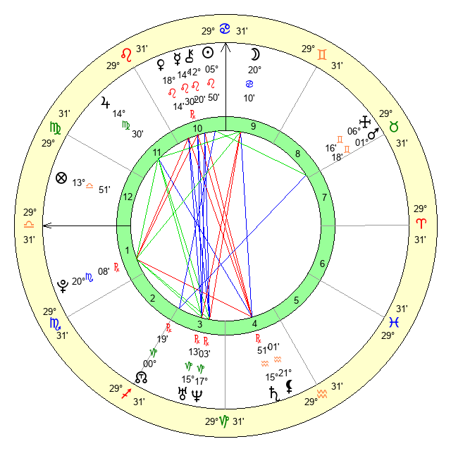 | Moon | 20 Cancer 10 | 23 Virgo 28 | 14 Libra 2 |