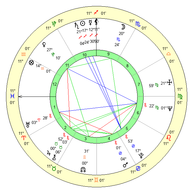 | Neptune | 1 Virgo 23 | 29 Pisces 21 | 29 Leo 19 |