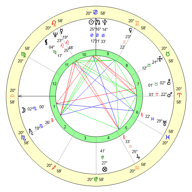 | Mars | 22 Aries 1 | 18 Virgo 13 | 14 Taurus 34 |