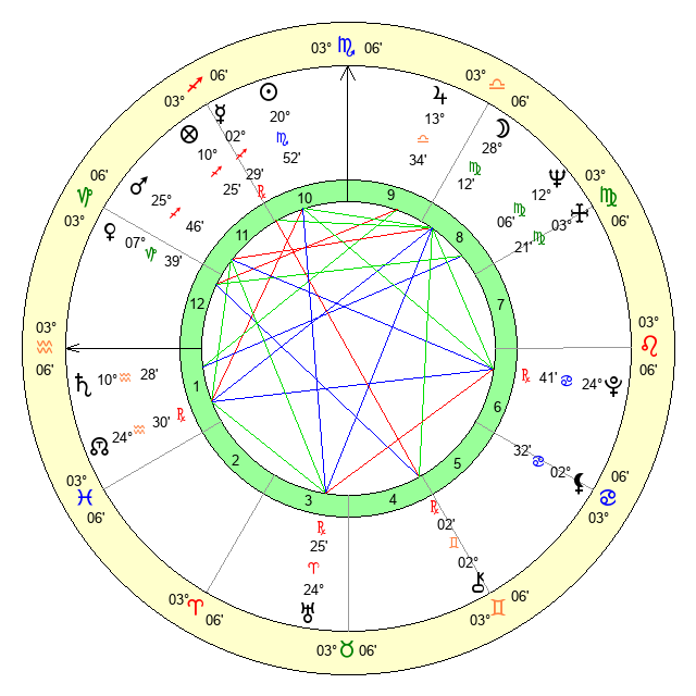 | Moon | 28 Virgo 11 | 9 Virgo 1 | 19 Aquarius 58 |