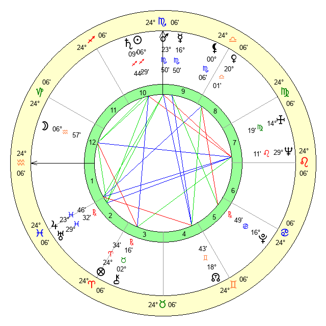 | Moon | 6 Aquarius 58 | 25 Pisces 25 | 18 Virgo 28 |