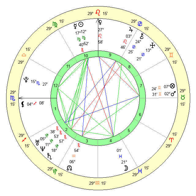 | Mars | 2 Gemini 30 | 18 Libra 59 | 13 Gemini 49 |