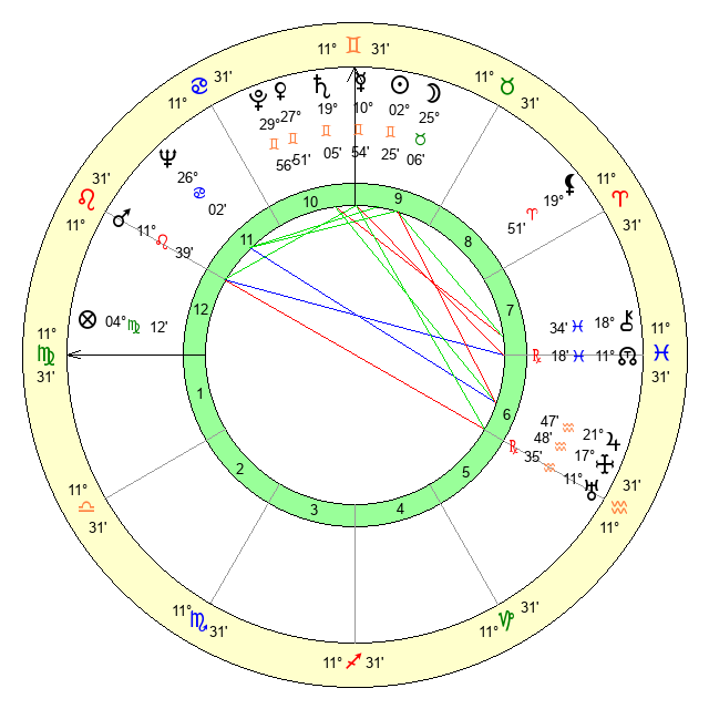 | Venus | 27 Gemini 51 | 17 Aries 54 | 5 Scorpio 6 |