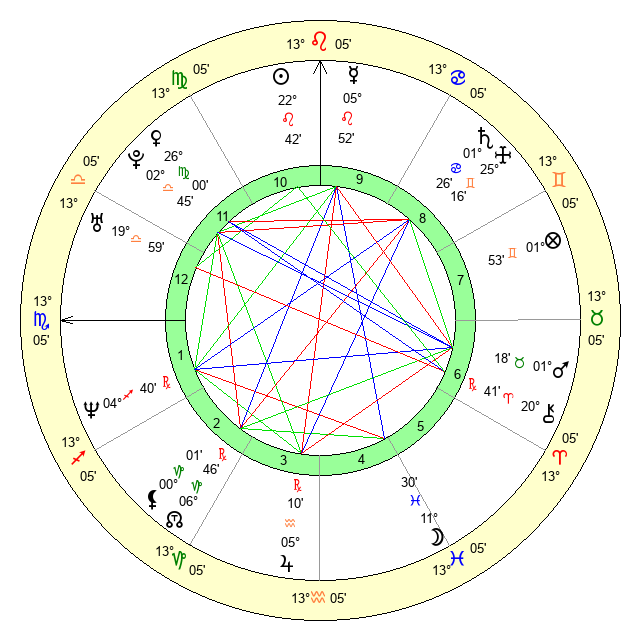| Sun | 22 Leo 42 | 23 Leo 7 | 13 Libra 17 |