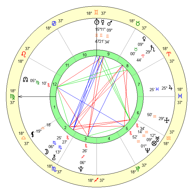 | Mars | 9 Gemini 34 | 24 Leo 8 | 28 Gemini 12 |