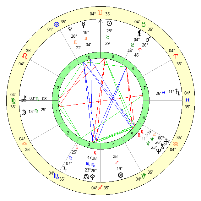 | Moon | 13 Virgo 29 | 19 Aquarius 5 | 6 Scorpio 30 |
