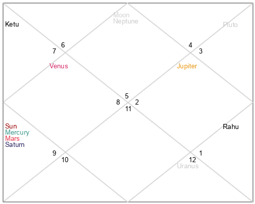 | Ketu | 28 Scorpio 13 | 12 Virgo 7 | 23 Scorpio 5 |