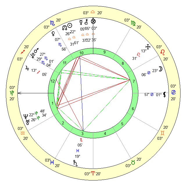 | Moon | 23 Cancer 5 | 29 Leo 20 | 25 Leo 18 |