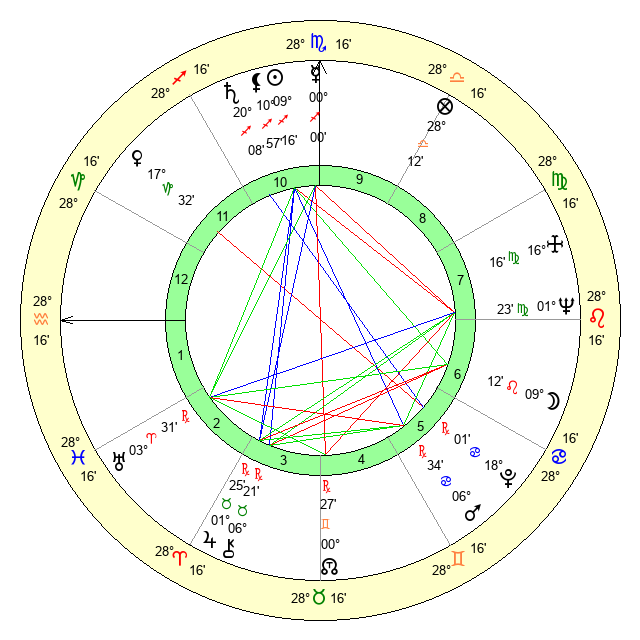 | Neptune | 1 Virgo 24 | 29 Pisces 23 | 29 Leo 32 |