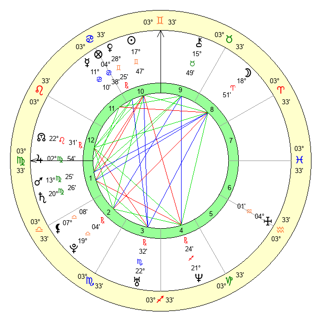 | Jupiter | 2 Virgo 47 | 29 Gemini 41 | 9 Virgo 53 |