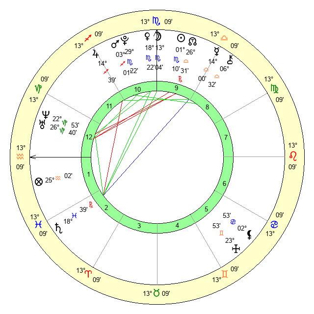 | Moon | 12 Scorpio 58 | 10 Sagittarius 46 | 21 Sagittarius 8 |