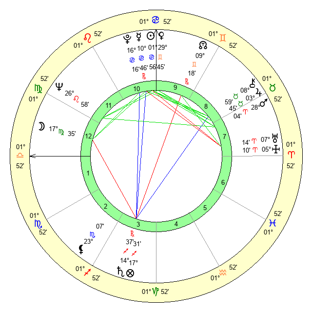 | Sun | 1 Cancer 56 | 2 Cancer 29 | 5 Libra 19 |