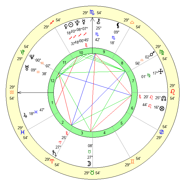 | Neptune | 0 Aquarius 6 | 27 Pisces 8 | 0 Aquarius 56 |