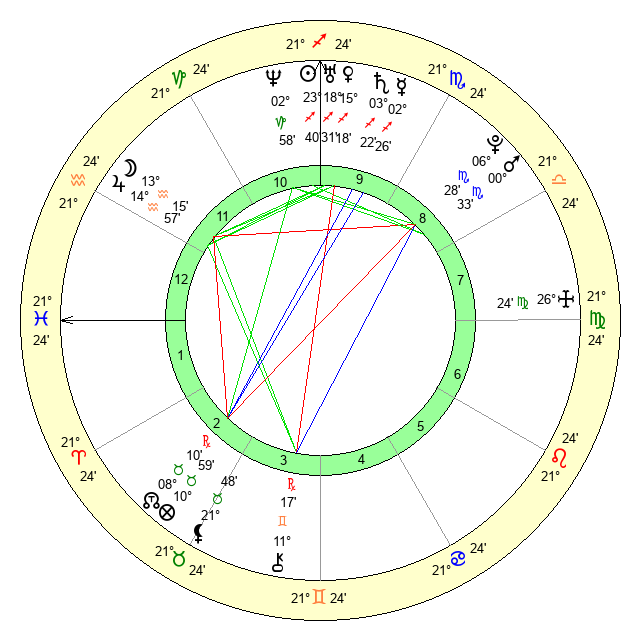 Jupiter | 14 Aquarius 57 | 15 Gemini 11 | 23 Aquarius 21 |