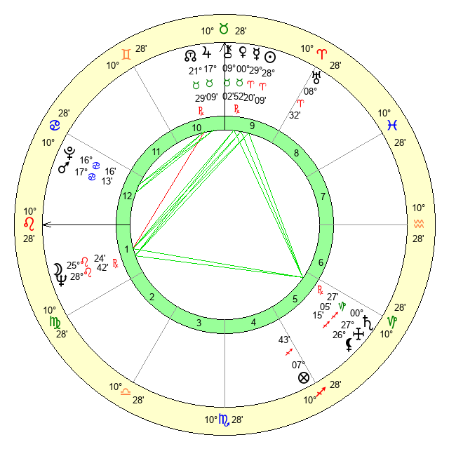 | Neptune | 28 Leo 43 | 0 Aries 41 | 29 Leo 59 |