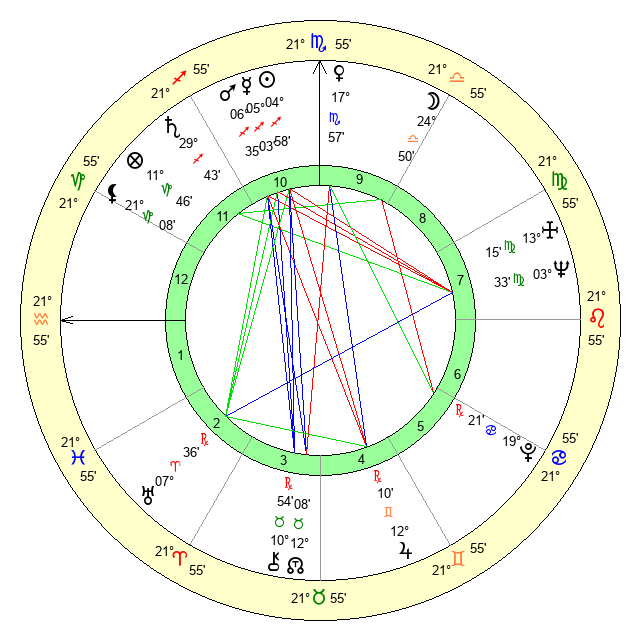 | Neptune | 3 Virgo 34 | 29 Pisces 24 | 1 Virgo 56 |