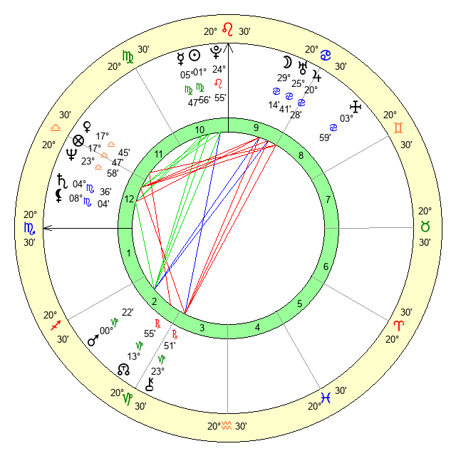 | Sun | 1 Virgo 56 | 2 Virgo 45 | 11 Scorpio 44 |