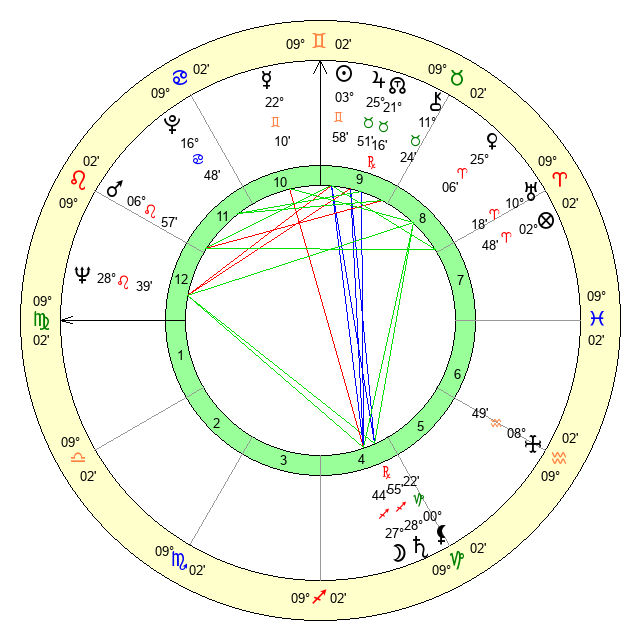 | Sun | 3 Gemini 58 | 4 Gemini 44 | 5 Virgo 51 |