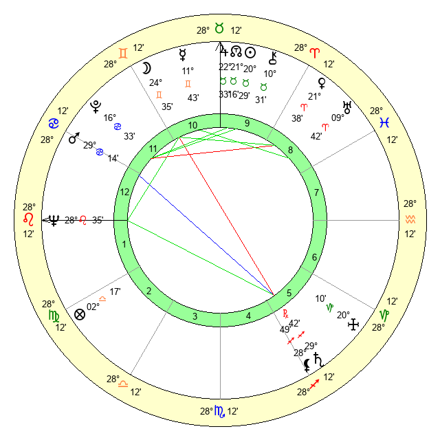 | Neptune | 28 Leo 36 | 1 Aries 24 | 0 Virgo 47 |