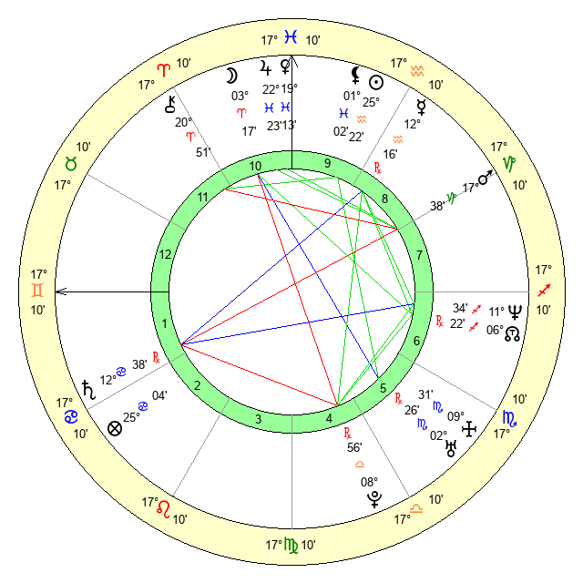 | Moon | 3 Aries 18 | 20 Virgo 25 | 9 Aquarius 29 |