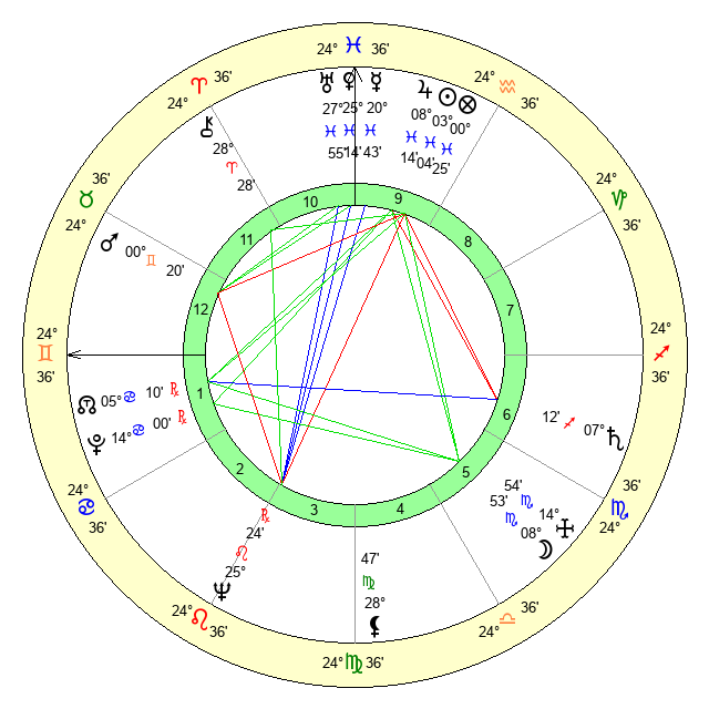| Sun | 3 Pisces 5 | 4 Pisces 19 | 9 Gemini 14 |