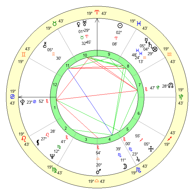 | Jupiter | 22 Scorpio 44 | 14 Gemini 46 | 13 Scorpio 44 |