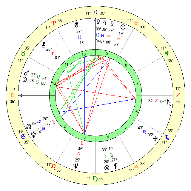 | Jupiter | 5 Pisces 4 | 11 Gemini 19 | 27 Pisces 1 |