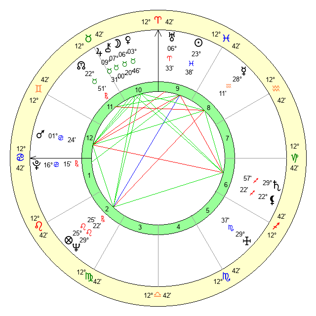 | Moon | 6 Taurus 23 | 28 Virgo 52 | 18 Scorpio 56 |