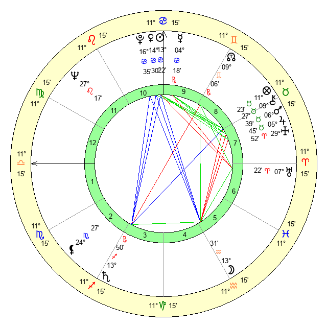 | Venus | 14 Cancer 31 | 1 Gemini 10 | 14 Scorpio 2 |